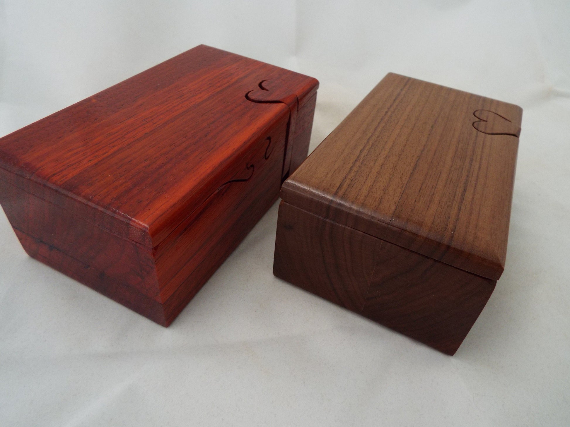 These are made to order. Each has 6 pieces. This is representative of the actual box you will receive. The "key" piece is a heart you slide up to remove. The lid then slides sideways, inner lid lifts out revealing inner compartment. There is an additional ring box concealed within that compartment.